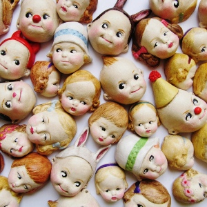 I select the cheekiest faces, repair them, and hand cast copies, sometimes with a fabulous new hat!