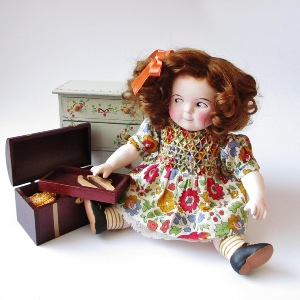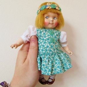 Eyes are always painted, and clothes removable, “play” is an important element in my doll making.