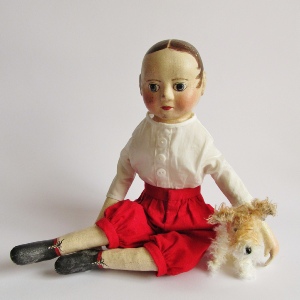 Usually with a cloth body, each doll is a one of a kind.